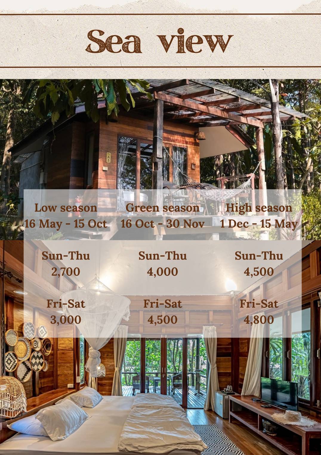 Extra Bed 400/500 Baht // Extra Breakfast 200/300 Baht